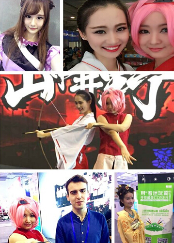 著迷嘉年華現場,除了正版游戲、互動抽獎,還有超萌火影小櫻Coser,還能看到《犬夜叉》里桔梗、《劍三唐門》里萬花蘿莉等。靚麗的Coser在各個游戲環節和玩家都有互動,與Coser合影也是觀眾一大愛好。(現場活動照片)