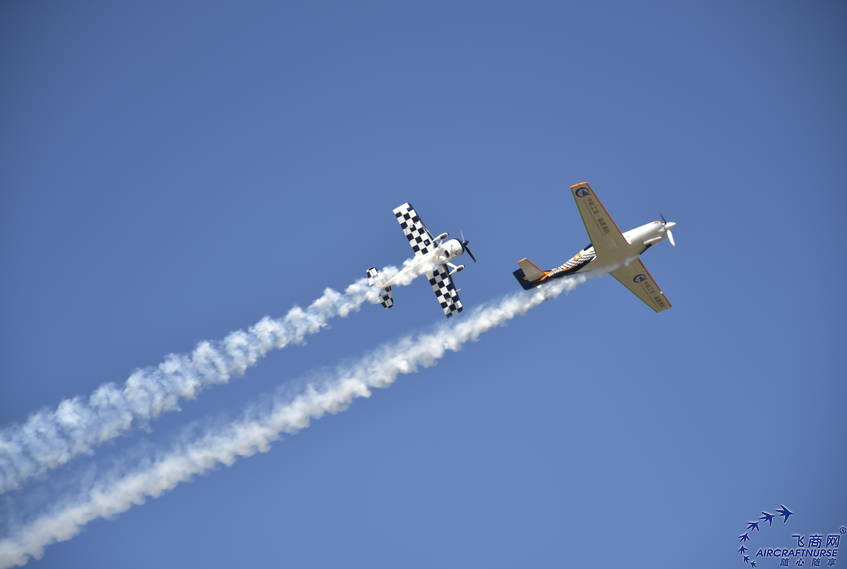 7. 飛商資訊:8月25日下午,展會上空迎來了飛行預熱表演賽。秋日高爽,浮云輕掠,伴著隆隆轟鳴,噴氣飛機穿行躍動于天際間,劃下道道奇異弧線,天空也因此而斑斕。法庫的晴空,因此而不同。