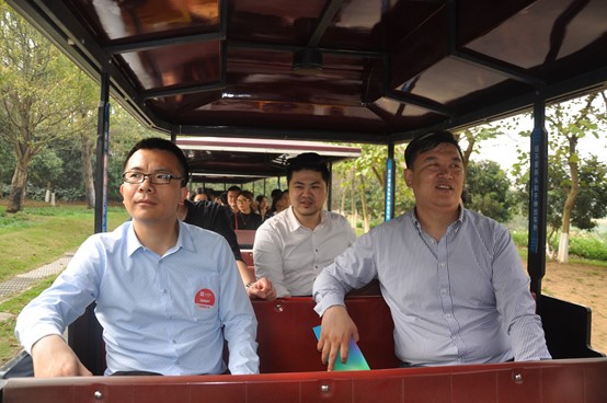 與會成員乘坐小火車游覽松山湖生態景區