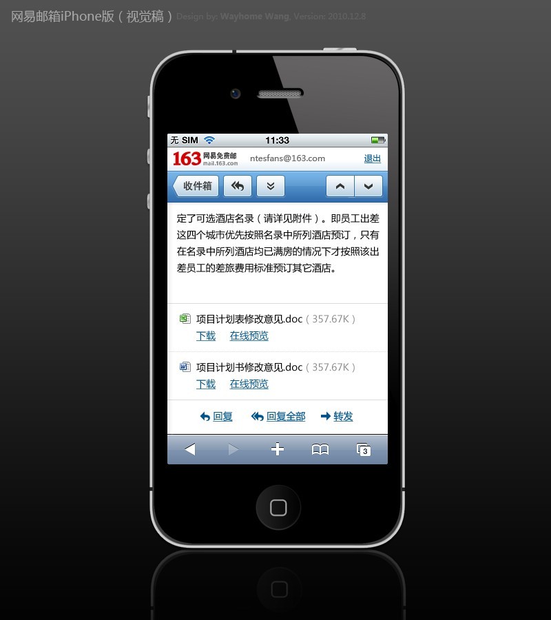 網易手機智能版郵箱還在業內率先實現附件在線預覽。不管是記事本、寫字板、word、excel、ppt 等文檔,還是 jpg、png 圖片,還有 zip、rar 等壓縮格式,都可以隨時選擇在線查看。
