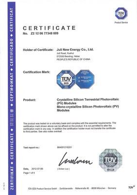 在全球能源形勢緊張、氣候變暖嚴重威脅經濟發展和人們生活健康的今天,世界各國都在尋求新的能源替代戰略,以求得可持續發展和在日后獲取優勢地位。目前,全球更是超過50%左右的太陽能產品由中國出口,而制造商獲得由第三方機構頒發的權威證書,證明其產品性能和安全的可靠性,已成為進入國際市場的必要條件。在光伏領域,TUV 南德意志集團提供測試,認證,出貨檢驗,質量評估與持續改進,實驗室建設,專家建議等服務。