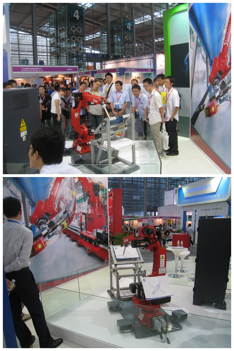 作為歐洲三大機器人品牌之一的柯馬公司,本次參展的機器人是柯馬機器人家族中較小的一款SMART SIX 機器人,腕部負載六公斤,重復定位精度達0.05mm,是可廣泛應用于弧焊、搬運、途膠等眾多領域。2010年上海世博會,同型號機器人在意大利館展出,有近千萬觀眾近距離感受過這款柯馬機器人。這次柯馬拿出這款世博機器人參展,也體現了對南方市場的重視和尊重。