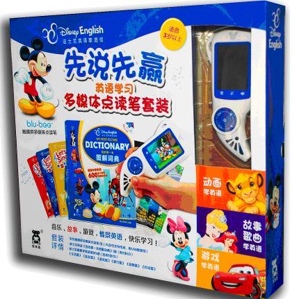 迪士尼英語學習彩色觸摸多媒體點讀筆套裝包含彩色觸摸屏多媒體點讀筆1支、《我的第一本圖解詞典》1冊 以及迪士尼唱歌學英語系列6冊,涵蓋了各種生活場景,包括《生活篇》 《親友篇》 《游戲篇》 《旅行篇》 《動物篇》 《時間篇》。