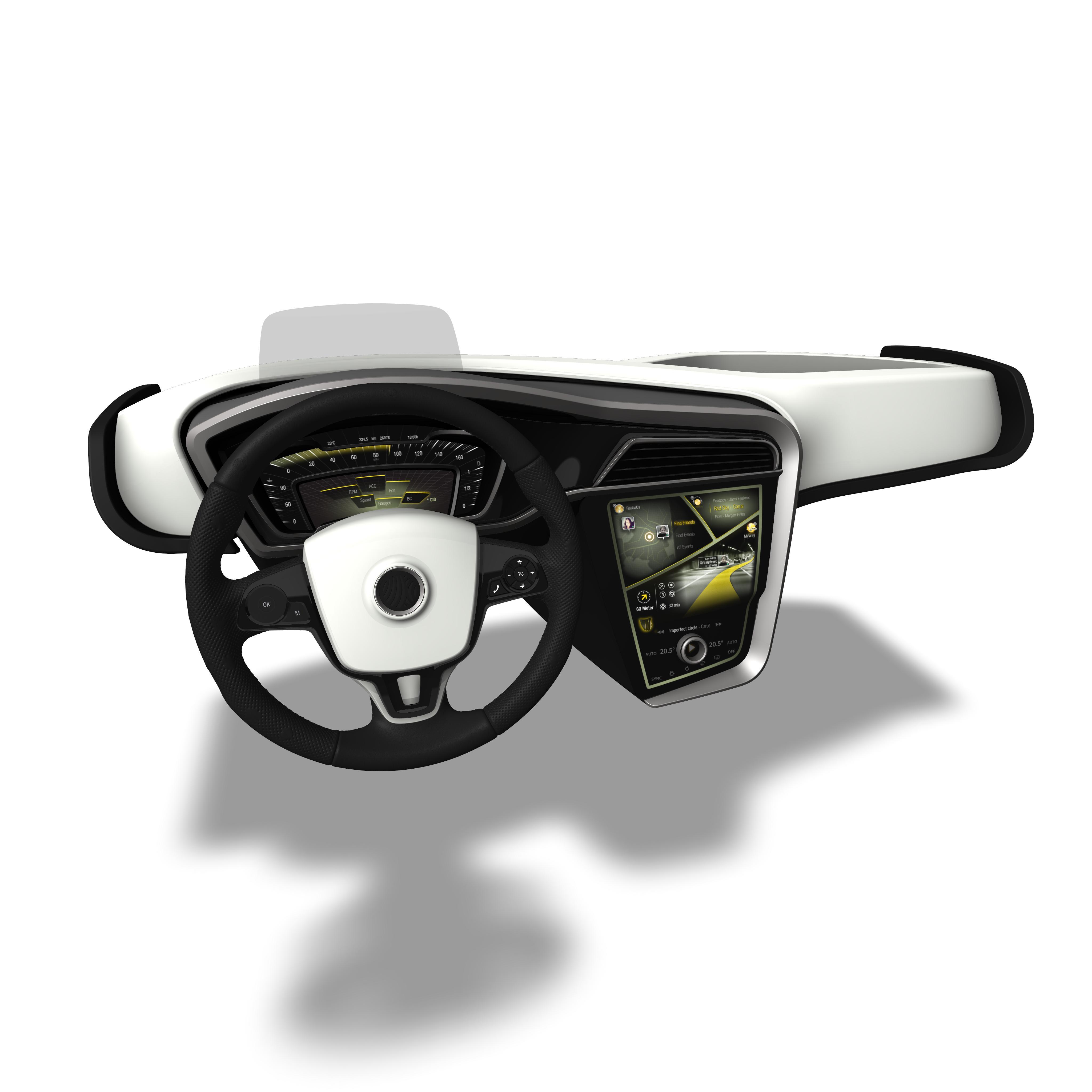 • 可根據整車制造商的需求靈活調整設計方案和精致工藝,在三維立體表面上實現座艙內飾與電子顯示屏的無縫集成。