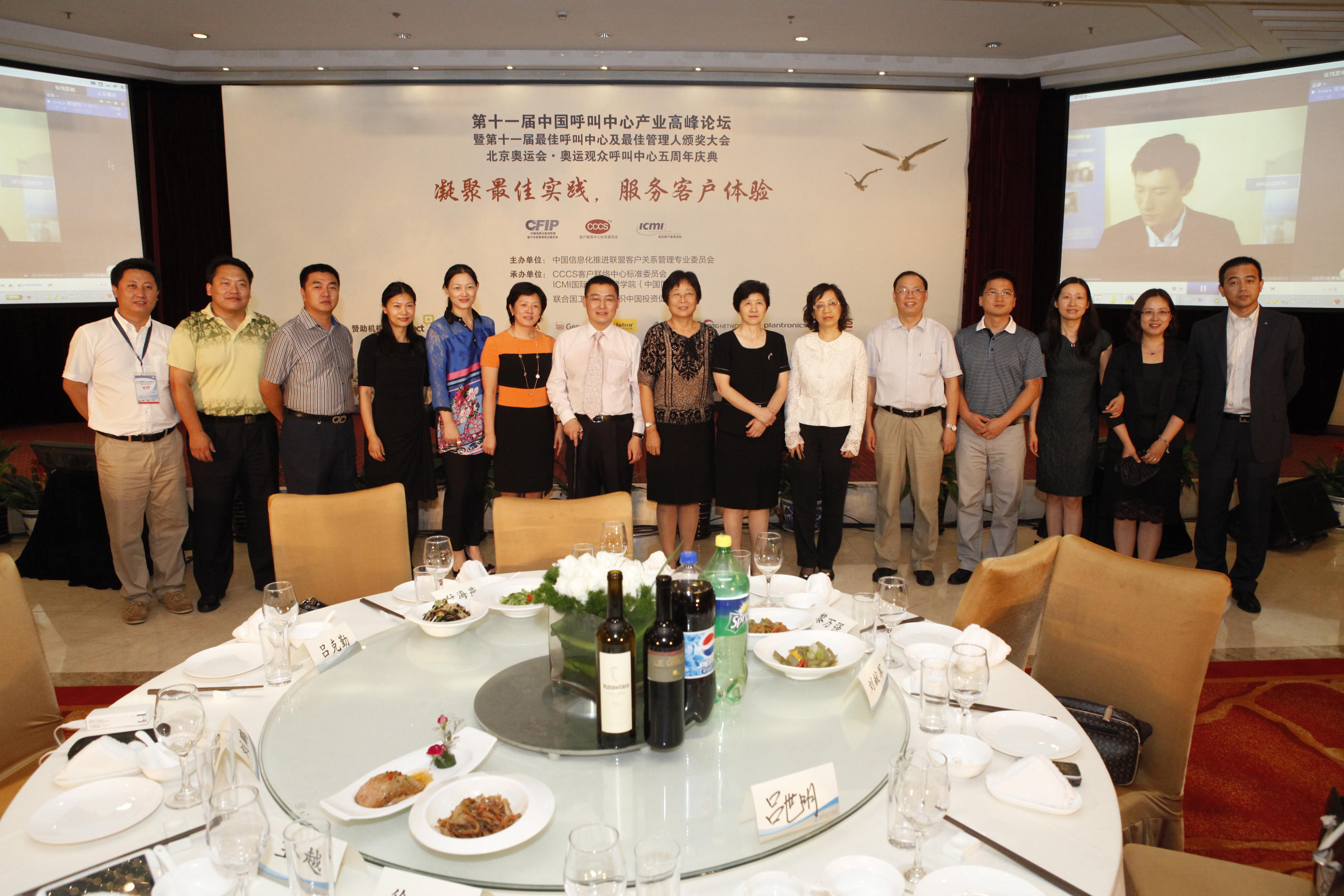 北京2013年8月19日電 /美通社/ -- 2013年8月8日,由中國信息化推進聯盟客戶關系管理專業委員會主辦,CCCS客戶聯絡中心標準委員會、ICMI國際客戶管理學院(中國區)承辦的第十一屆中國呼叫中心產業高峰論壇暨第十一屆中國較佳呼叫中心及較佳管理人頒獎大會、北京奧運會·奧運觀眾呼叫中心五周年慶典在北京凱迪克格蘭云天大酒店成功舉辦。中國信息化推進聯盟副理事長兼秘書長劉獻軍主任、聯合國工業發展組織國別項目主任兼首席代表特別事務助理羅響博士以及UBM(中國區)副總裁、ICMI國際客戶管理學院(中國區)總裁、中國信息化推進聯盟客戶關系管理專業委員會常務副主任、CCCS聯絡中心標準委員會主席、第二十九屆奧林匹克運動會組織委員會奧運觀眾呼叫中心顧問、服務總監呂克勤先生及來自于國內外的200余位企業主管、分管呼叫中心業務的領導和專家出席了本次大會。
