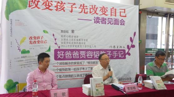 北京2013年9月18日電 /美通社/ -- 2013年9月14日下午1時30分,由作家出版社主辦,貴州網支持的《改變孩子先改變自己》讀者見面暨簽售會在北京西單圖書大廈一樓隆重舉行。會上,此書的責任編輯鄭建華老師首先發言。隨后,作者賈容韜及賈語凡談及此書的創作歷程和家教感悟。眾多家長朋友專程從各地趕來,分享了《改變孩子先改變自己》帶給自己和孩子的巨大幫助。