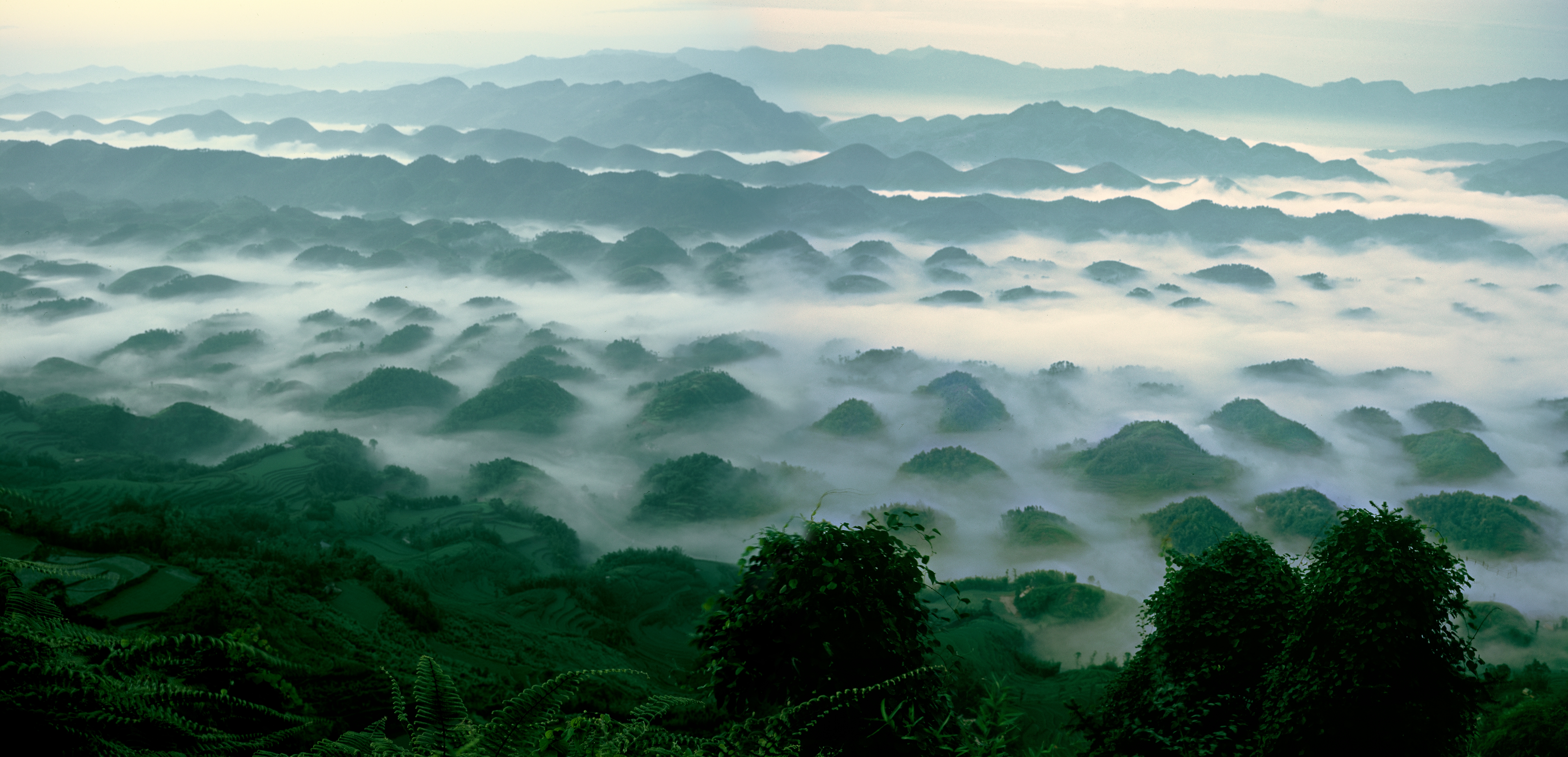 這張百龜拜壽的圖片其實大有來頭,在2008年北京奧運會開幕式上,這張照片就向全世界展示了“云山竹海 天上人間”的美麗畫面。時值冬季,已經到了欣賞這一美景的較佳時節,百龜印照在裊裊嵐霧中,變換莫測,讓人感覺飄飄欲仙。百龜拜壽可謂是蜀南竹海壯美全景的代表。