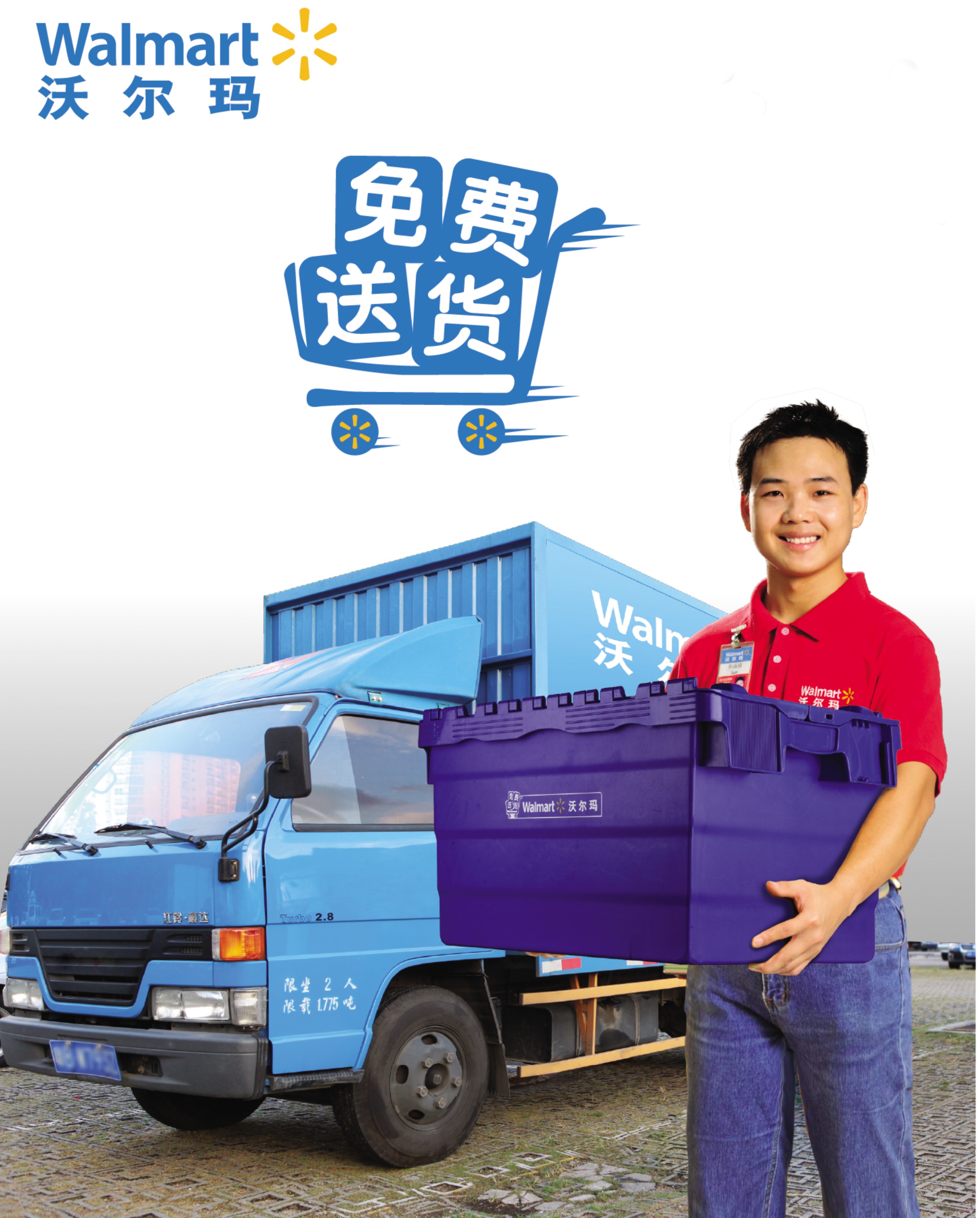 此外,沃爾瑪在各地正陸續推出一次性買滿188元、2公里內可以免費送貨(除凍品、鮮食以外)的服務,如消費金額不足188元只需多花5元便可享送貨服務。顧客只需在結帳后前往門店免費送貨區,憑小票登記即可享免費送貨上門。下午4點前登記,貨物當天送達;下午4點后登記,貨物次日上午送達。全國過半數的沃爾瑪及好又多門店將在2014年春節前提供該服務,預計明年中推廣至所有門店。